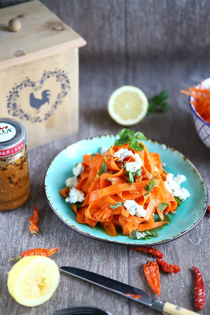 Create an amazing side dish with this simple carrot salad with blue cheese and fresh herbs. A simple vegetable peeler turns carrots into beautifully thin ribbons, then marinated in a hot, garlicky, lemony and mildly sweet dressing. Try it with roasted chicken, fish or even tofu if you prefer a meatless meal.