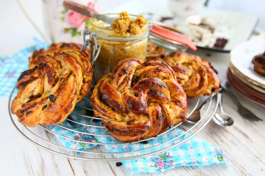 Take the everyday bread buns to a whole new level by using the homemade turmeric date filling to make this decorative twisted bread. Packed with fruit, nuts and turmeric spice, the whole family will love them. There is truly no scent as amazing as freshly baked warm bread wafting from the oven and nothing else spells home in quite the same delicious way.